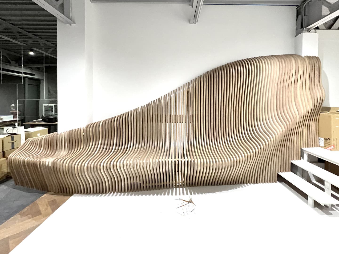 家具としての機能もしっかり兼ね備えており、椅子、看板、棚など、多岐にわたるアイテムは、その有機的なデザインと高度な技術が融合し、ただの家具以上の存在感を放っています。